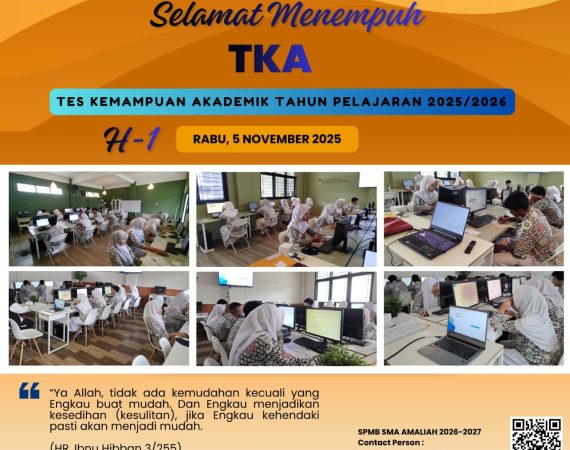 SMA Amaliah kembali melaksanakan kegiatan Tes Kemampuan Akademik (TKA) sebagai bagian dari program penguatan kompetensi dan kesiapan belajar peserta didik. Kegiatan ini dirancang untuk mengukur kemampuan dasar siswa dalam bidang akademik seperti Bahasa Indonesia, Bahasa Inggris, Matematika, dan Ilmu Pengetahuan Sosial. Melalui pelaksanaan TKA, sekolah berupaya memberikan gambaran kepada...